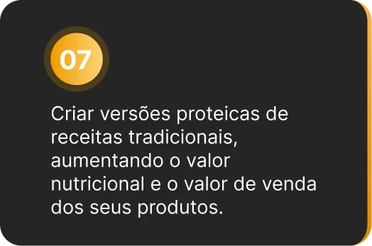 E o melhor: você aprende a criar refeições saudáveis e também versões proteicas, muito procuradas por quem busca saciedade, definição e resultados rápidos, aumentando ainda mais seu ticket médio.